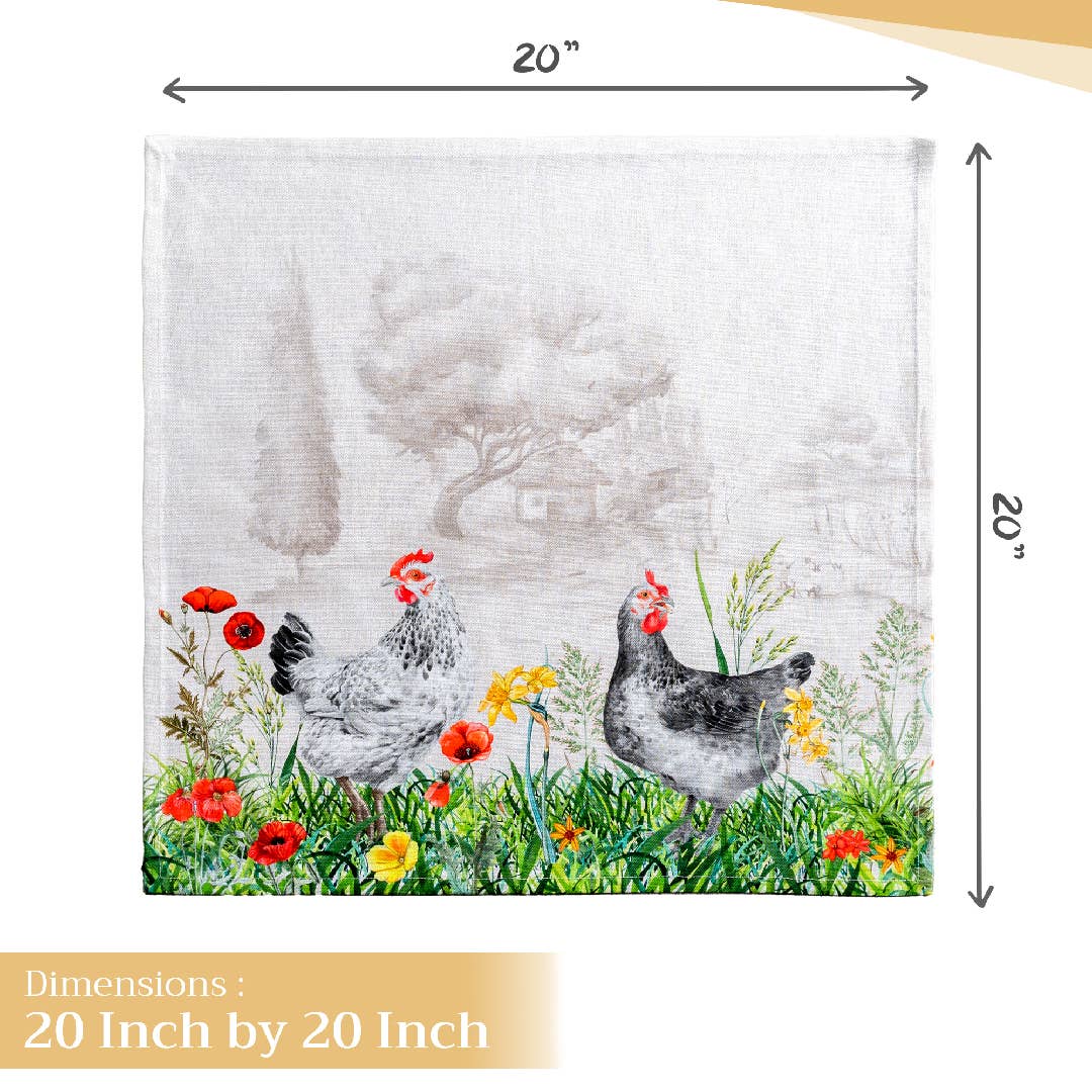 Napkins, Chickens, 100% Cotton Napkins 20" X 20" - Set Of 4