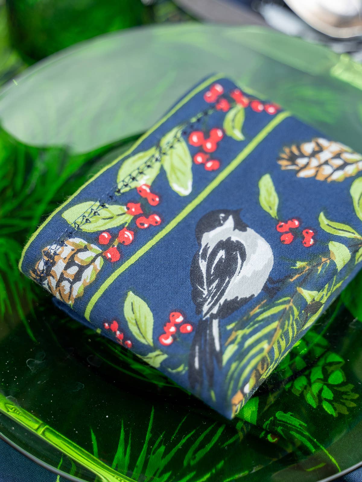 Napkin , Chickadee Luncheon Napkin Set of 4 - Navy