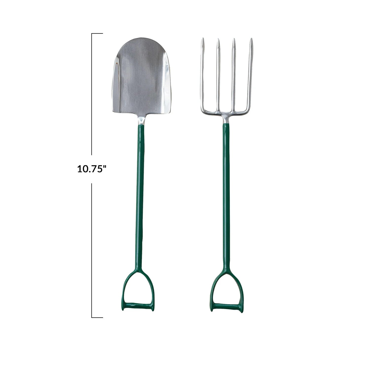 This set of 10.75-inch Stainless Steel Salad Servers with Handles is a blend of functionality and visual appeal. T