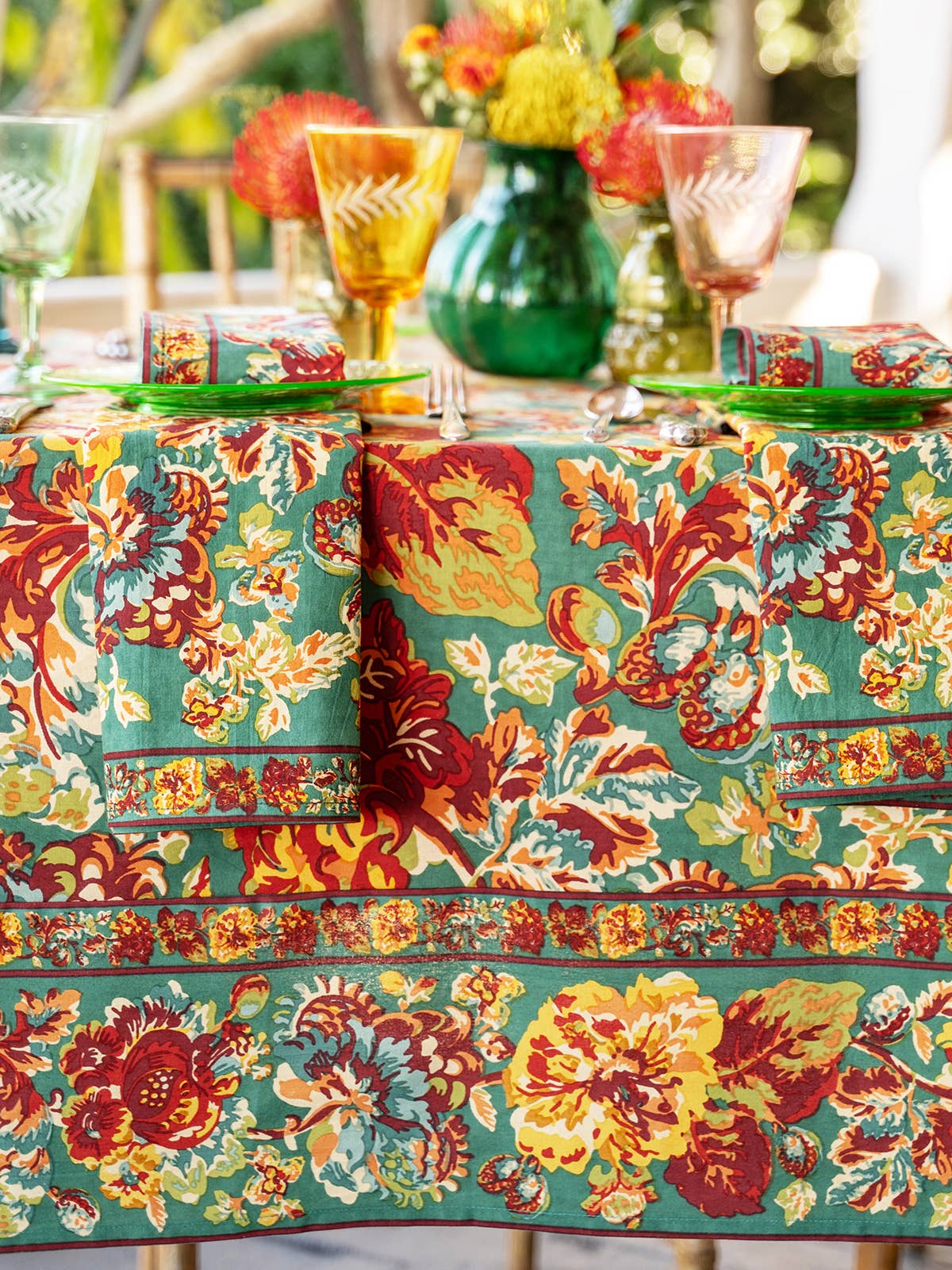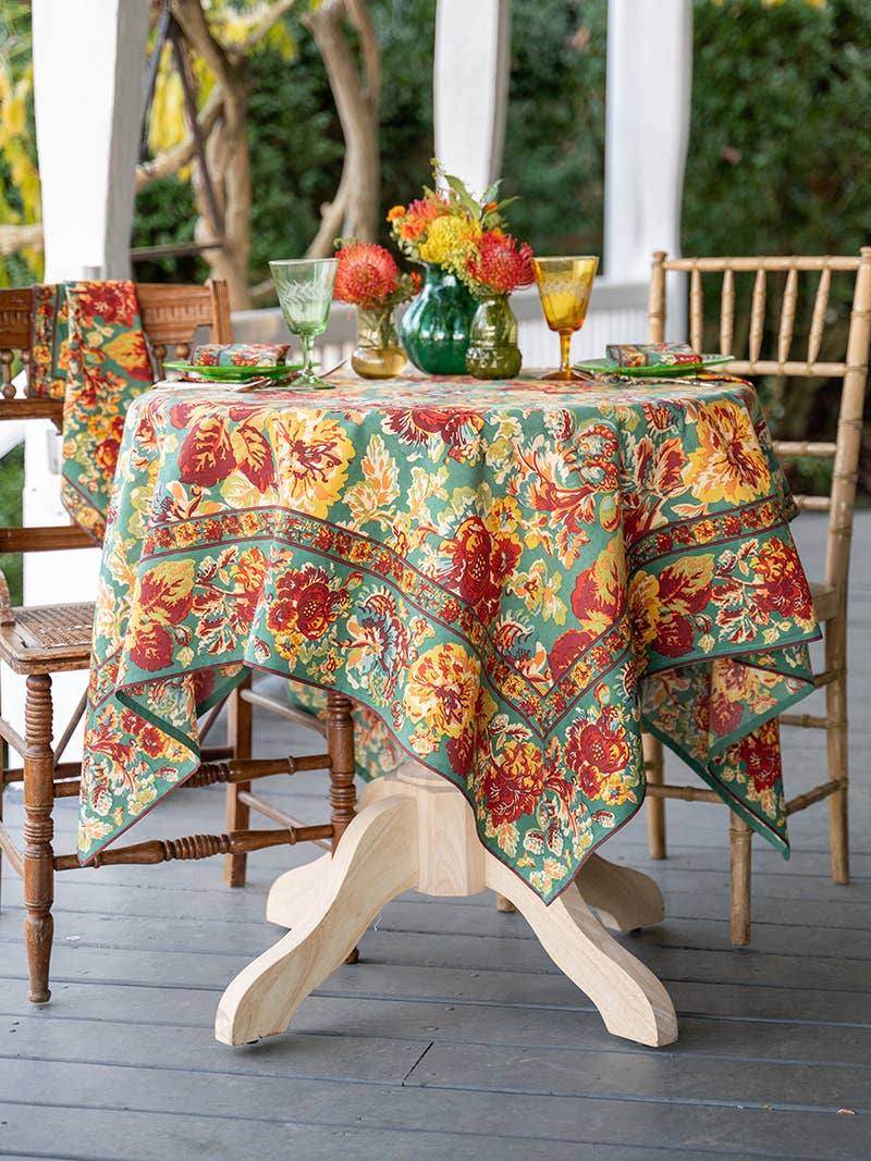 Tablecloth, April Cornell Pomegranate Tablecloth - Teal: 54x54